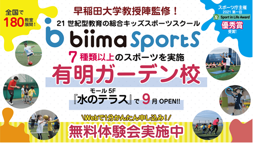 早稲田大学教授陣と共同開発した総合スポーツスクール「biima sports(ビーマスポーツ)」が有明ガーデンに新規開校!