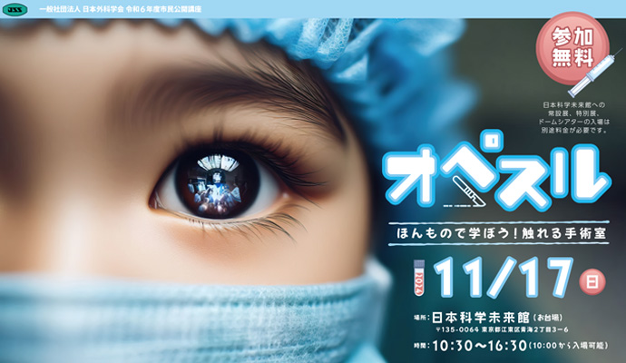 小学生・中学生・高校生とその家族を対象とし、医師・外科の知識や仕事について楽しみながら学び、日々の生活や将来に活かしていただくことを目的としています。