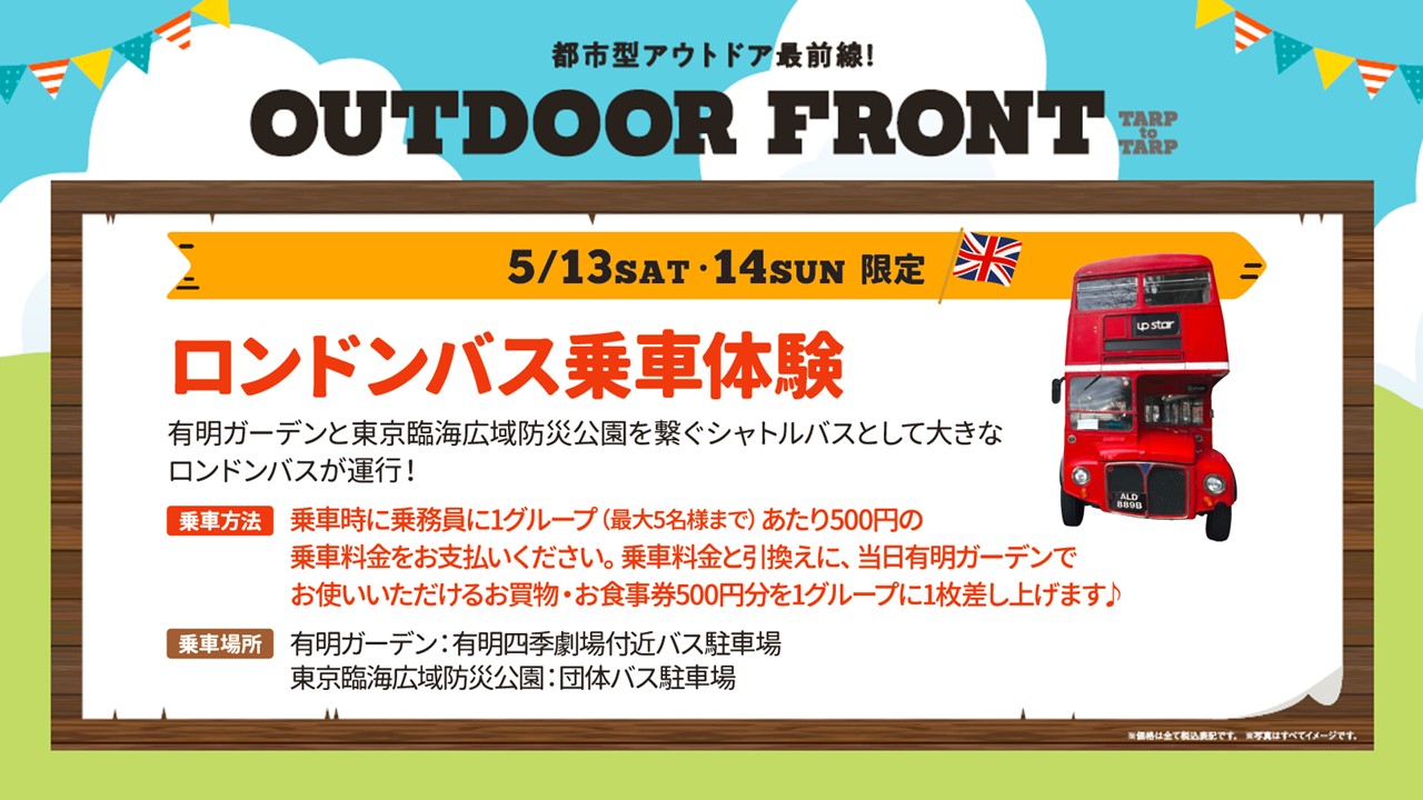 有明ガーデンと東京臨海広域防災公園を繋ぐシャトルバスとして大きなロンドンバスが運行します!
