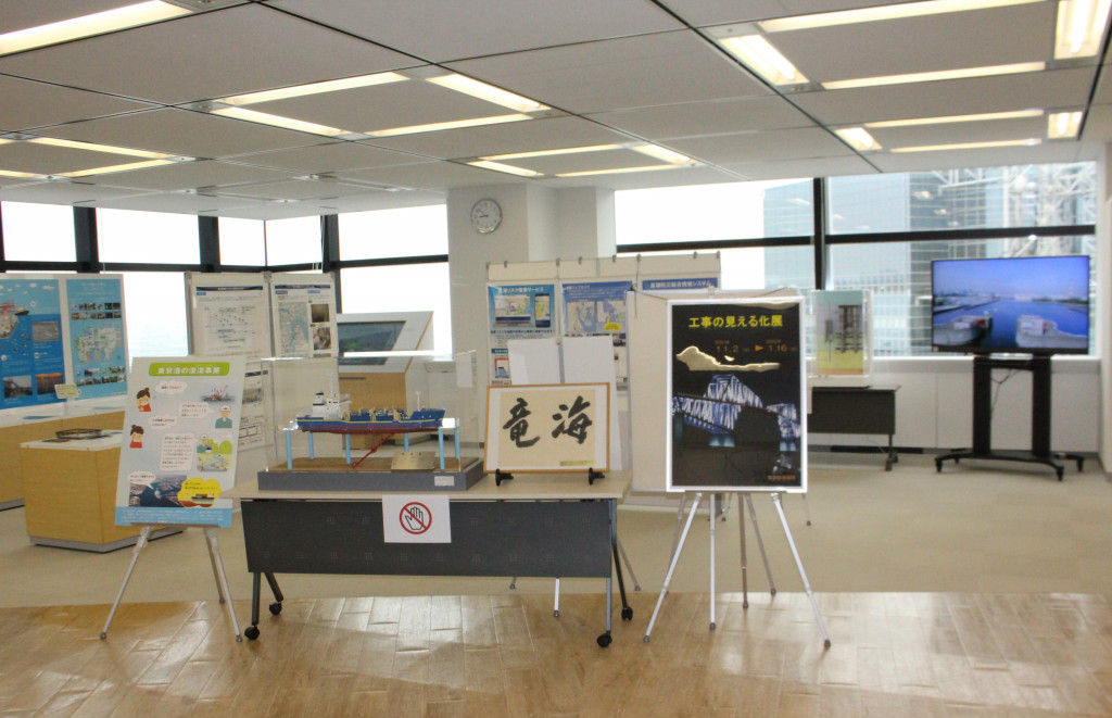 이러한 다양한 공사 가운데, 이번에는 준설 공사와 수심 측량 조사, 신해면 처분장 정비, 임항 도로 등의 무전주화 공사, 교량·터널의 장수명화 공사, 고조(高潮) 대책 등에 대해서 패널과 모형, 영상을 통해 「가시화」하여 소개합니다.