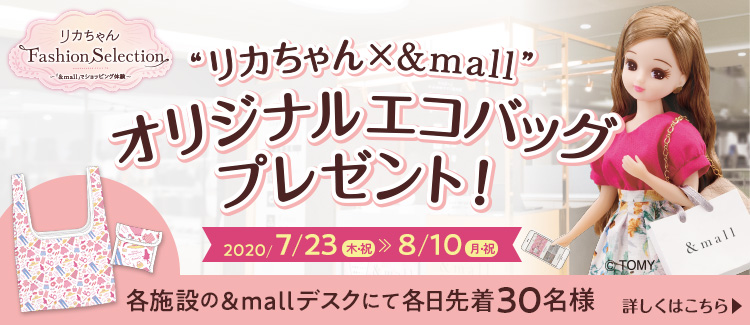每天將在各個設施按先到順序贈送30名顧客“莉嘉娃娃×&mall原創環保袋”!