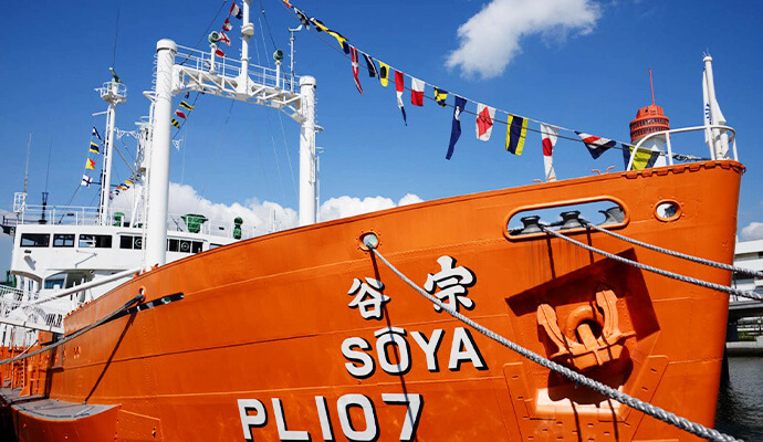 每逢周年纪念日等特殊场合都会举行“万旗挂旗”活动,在“宗谷”号上从船头到船尾都会悬挂多面旗帜。