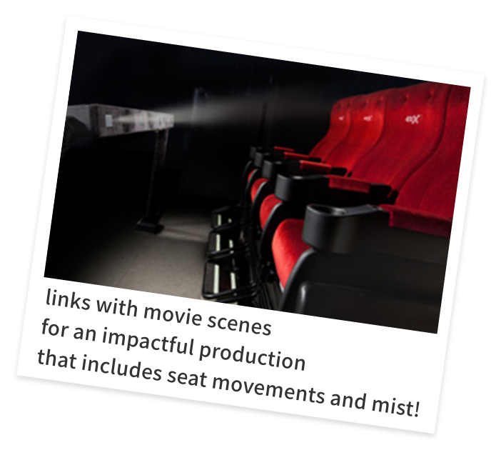 At the movie theater in the shopping center, experience the latest technologies such as ScreenX and 4DX