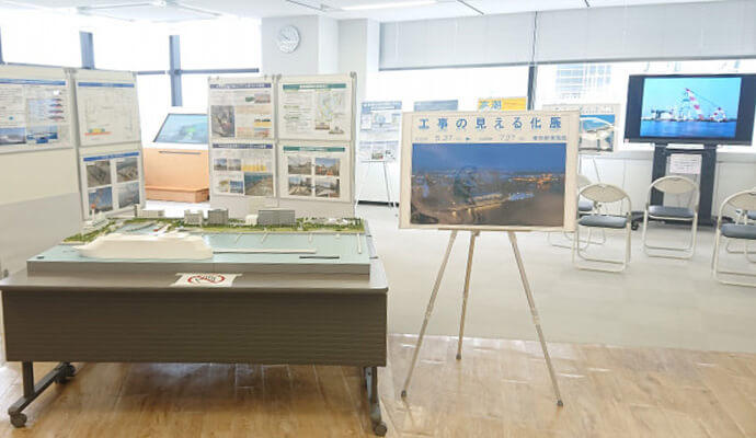 We will hold the "Construction Visualization Exhibition" to "visualize" and introduce various construction works carried out daily at Tokyo Port through panels, models, and videos.