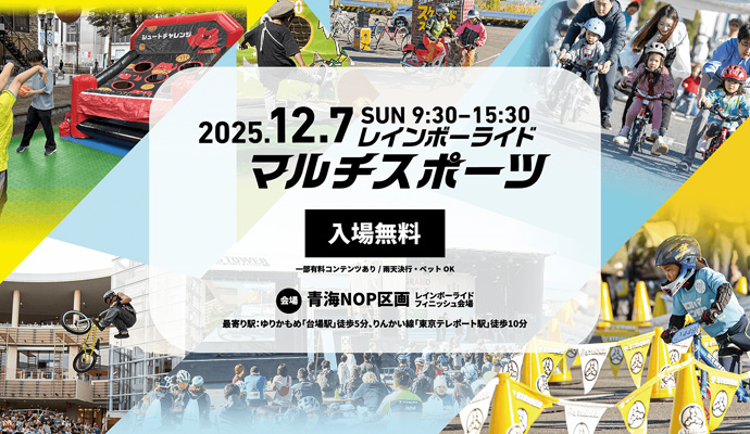 On the day of the "Rainbow Ride 2025" event, where participants cycle across the Rainbow Bridge and Tokyo Gate Bridge, we will be holding "Multi-Sports," an event to enjoy cycling and various other sports.
