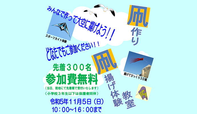 Let's make your own original kite using a simple kit and fly it on the lawn of Shiokaze Park.
