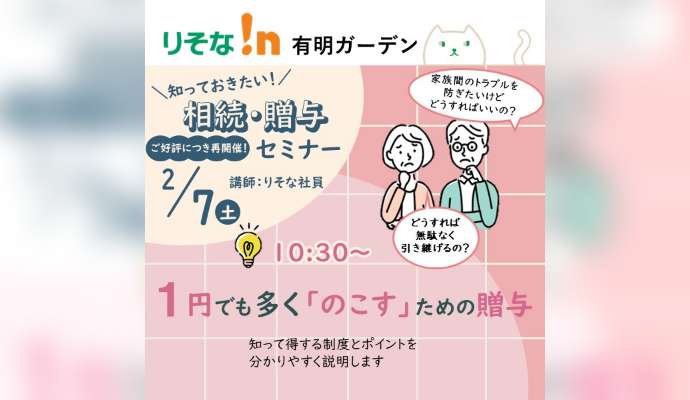 あなたのご資産を、大切な方に引き継ぐために。これからの人生を楽しく過ごすために。 知って得する制度とポイントを分かりやすくご説明しますので、お気軽にご参加ください。