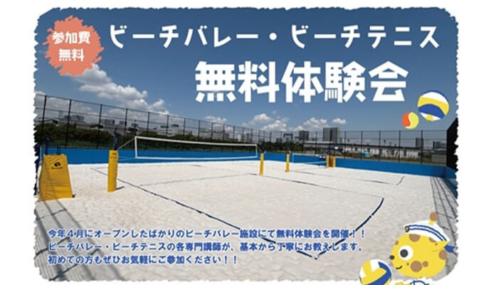 今年度4月に営業開始したビーチバレー施設で、無料体験会を開催!!ビーチバレー・ビーチテニスの各専門講師が、基本から丁寧にお教えします。