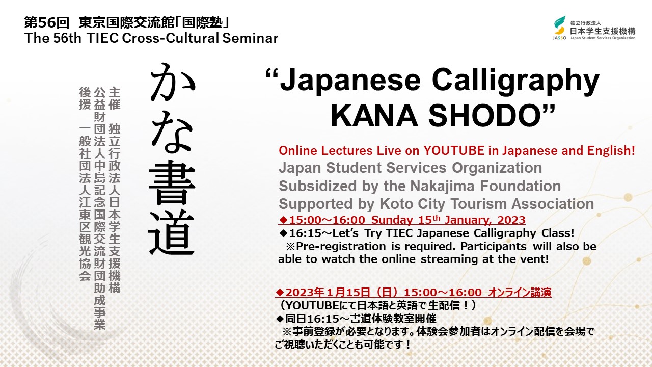 第56回 東京国際交流館「国際塾」かな書道-Japanese Calligraphy KANA SHODO-<オンライン / 東京国際交流館>