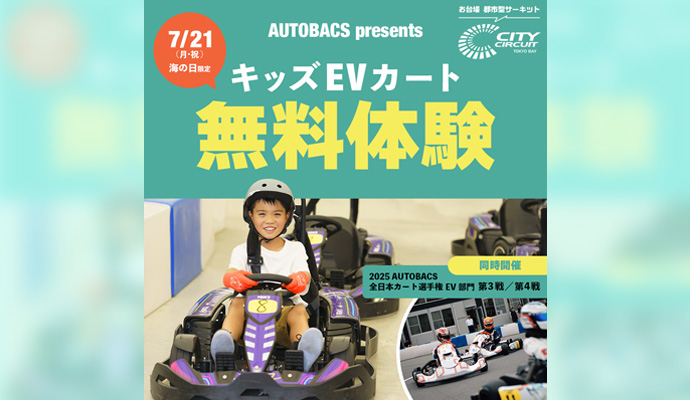 2025 AUTOBACS 全日本カート選手権 EV部門 第3戦・第4戦を記念して、「AUTOBACS presents キッズEVカート走行体験無料&屋外EVカート体験 1,000円イベント」が7/21(月・祝)の海の日に開催されます!