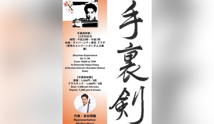 2F フェスティバル広場にで「手裏剣」体験会を開催いたします!