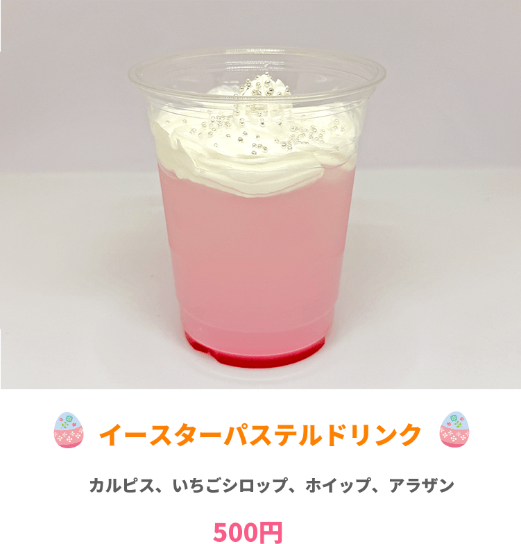イースターをイメージしたメニューの販売や、お子様も楽しめるアトラクションで、かわいいノベルティが登場!春らしい気分を盛り上げるイースターイベントを楽しもう!