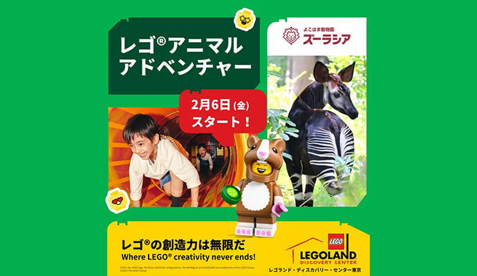 イベント期間中、レゴランド・ディスカバリー・センター東京およびよこはま動物園ズーラシアでは、来場者を対象とした特典キャンペーンを実施します。2つの施設をめぐって、リアルなどうぶつの世界と、レゴブロックで広がるどうぶつの世界、どちらもお楽しみください。