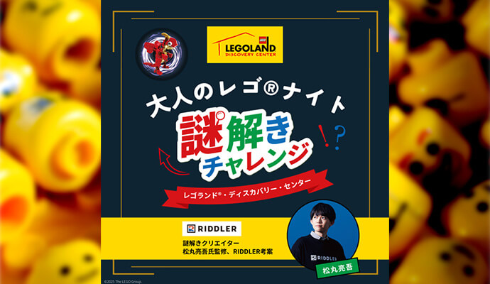 謎解きクリエイター・松丸亮吾さん監修、および松丸さんが代表を務める謎解きクリエイター集団・RIDDLER (リドラ) が考案する「謎解きチャレンジ」の大人向けイベント「大人のレゴナイト 〜謎解きチャレンジ〜」を、レゴランド・ディスカバリー・センター東京にて2025年4月5日(土)から開催します。