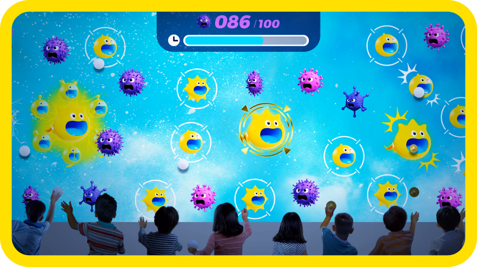 タイミングを合わせて適切なボタンを押すリズムゲーム!それぞれの得点を競い、免疫とウイルスについて楽しく学べます!