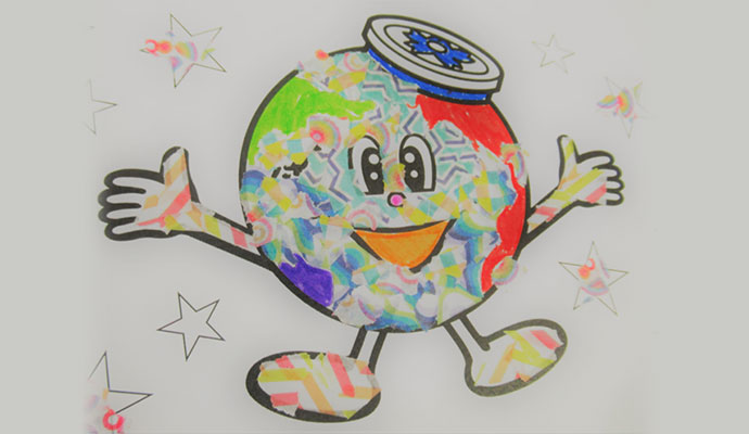 下水道館のスタッフといっしょに、マスキングテープを使ったちぎり絵で、東京都下水道局のキャラクター「アースくん」を描いてみましょう!