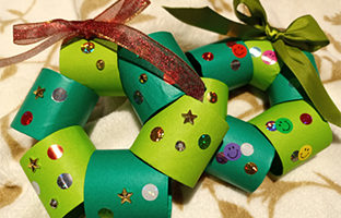 普段捨てられてしまうトイレットペーパーの芯を使って、ナビゲーターと一緒にクリスマスリースをつくりましょう。つくった作品はお持ち帰りいただけます。