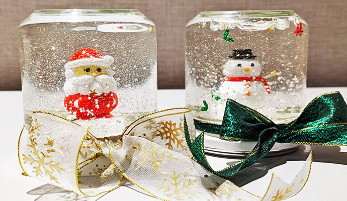 今回はこれからの季節にぴったりな、”クリスマススノードームをつくろう!”です。水と相性の良いグリセリンを使い、びんの中でラメやスパンコールがきらきら揺れて動く、見ていて楽しくとってもきれいな工作になりますので、ぜひチャレンジしてみてくださいね。