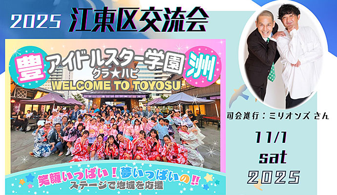 豊洲 千客万来2階・時の鐘広場で、2025 江東区交流会を開催します。
