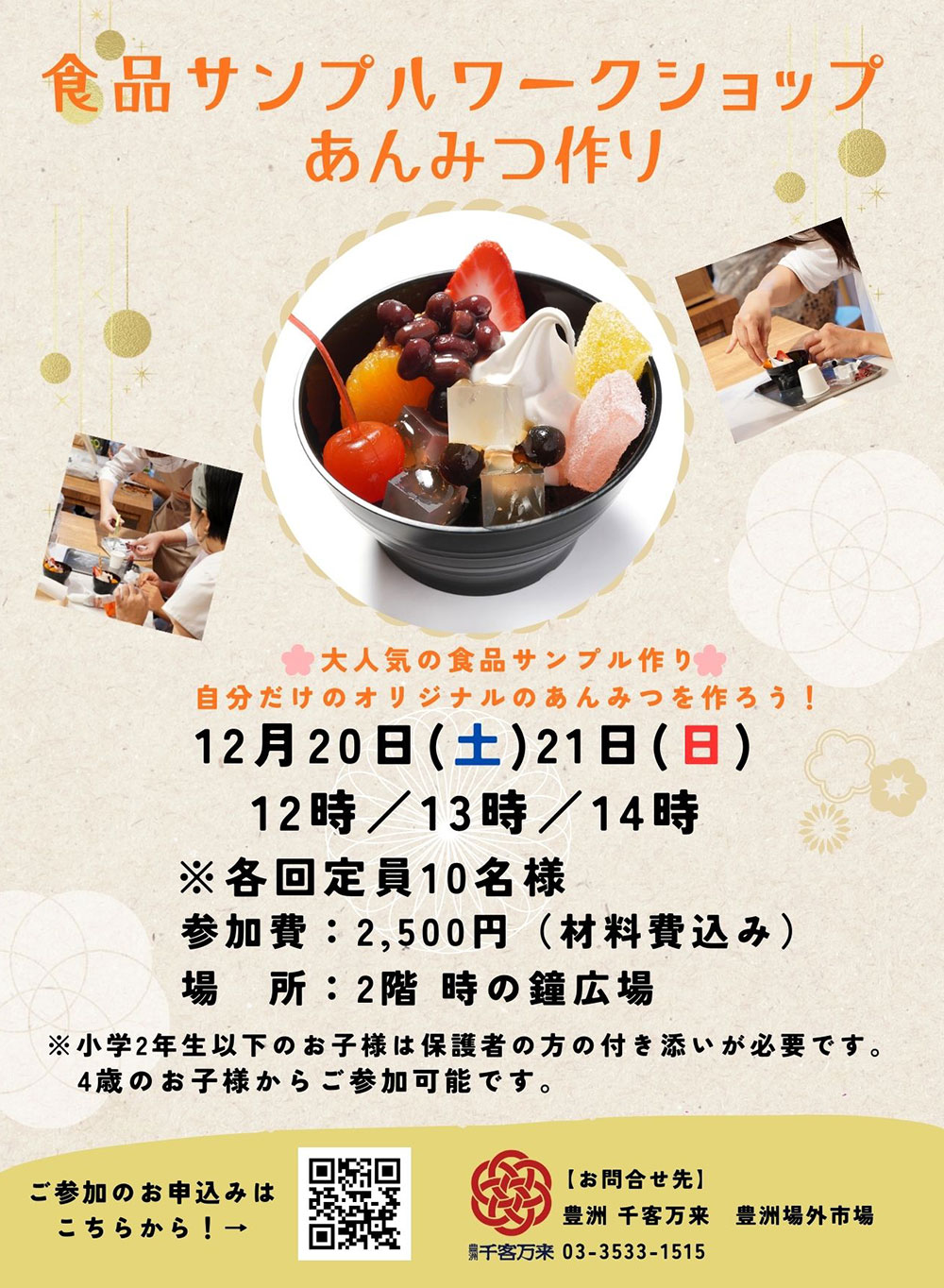 豊洲 千客万来で、大人気の「食品サンプルワークショップ あんみつ作り」を開催します!