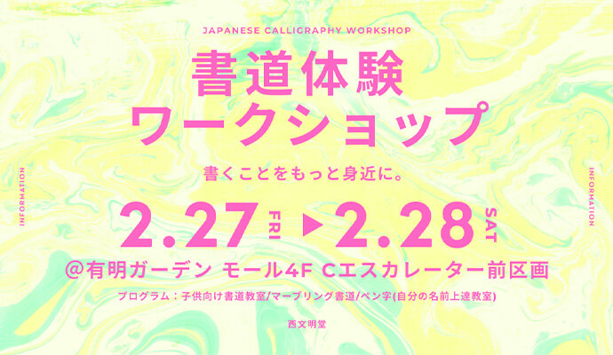 伝統的な書道から、彩り豊かなマーブリング書道、ご自身の名前上達を目的とした、ペン字教室を実施します!