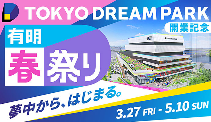 『有明春祭り』は、「TOKYO DREAM PARK」の開業日である3月27日 (金) から5月10日 (日) までの期間で開催します。施設内を中心に、近隣施設「TOYOTA ARENA TOKYO」やシンボルプロムナード公園など、有明エリアを舞台に展開。