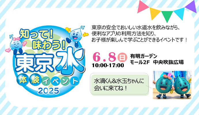 「知って!味わう! 東京水 体験イベント2025」は、東京の安全でおいしい高品質な水道水 (東京水) を飲みながら、便利なアプリの利用方法を知り、また、お子様が楽しんで学ぶことができるイベントです。