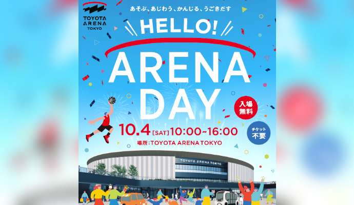 なお、施設近隣にあるエリアの「シティサーキット東京ベイ」、「夢の広場」などでも、ARENA DAY に合わせたイベントを実施予定です。