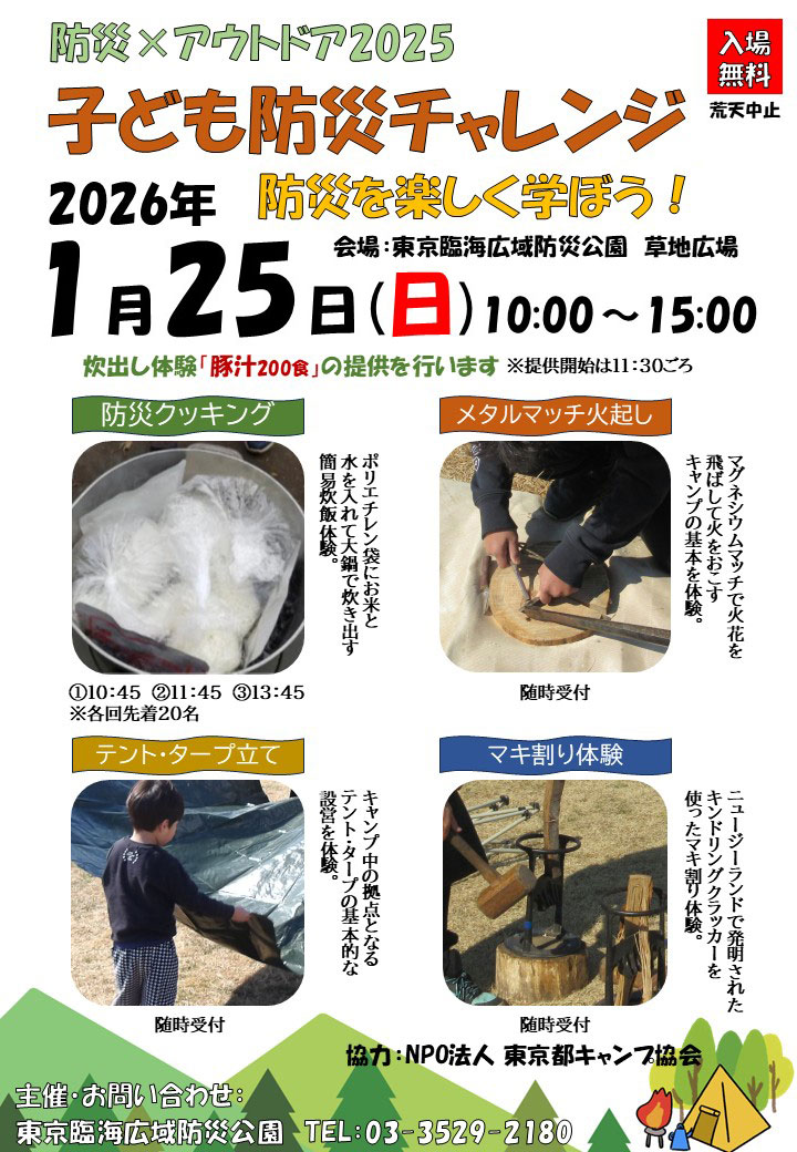 東京臨海広域防災公園では、2026年1月25日(日)に「子ども防災チャレンジ」を開催します。