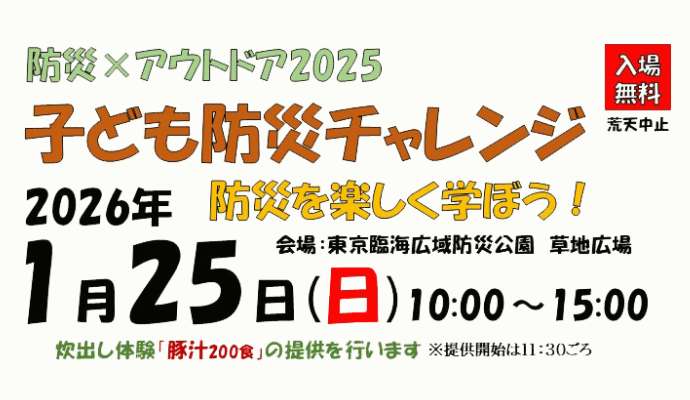 東京臨海広域防災公園では、2026年1月25日(日)に「子ども防災チャレンジ」を開催します。