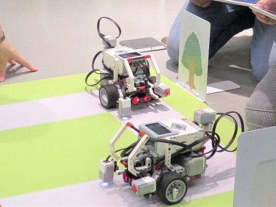 自動運転車は、人間の代わりにアクセルやブレーキ、ハンドルなどを操作してくれる機能をもつ車です。このワークショップでは、LEGO社のロボット「EV3」を使って、自動運転に用いられる技術をロボットで再現(プログラミング)して、オリジナルコースにチャレンジします。