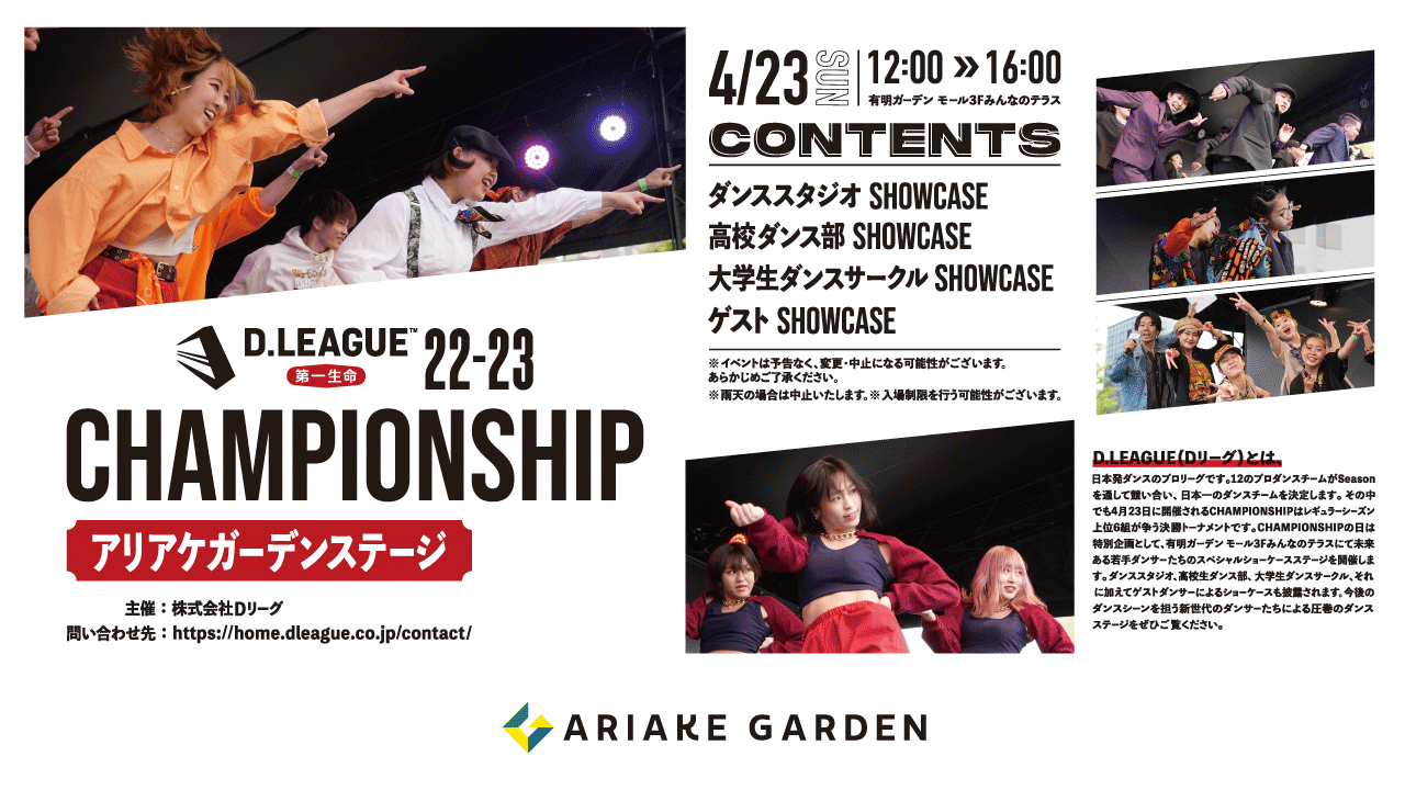 4/23(日)チャンピオンシップの日に特別企画として未来ある若手ダンサーたちによるスペシャルショーケースステージ「アリアケガーデンステージ」を開催します!