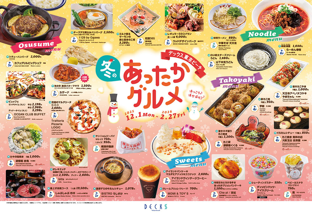 2025年12月1日(月)~2026年2月27日(金)の期間中、「デックス東京ビーチ 冬のあったかグルメ」を開催します。