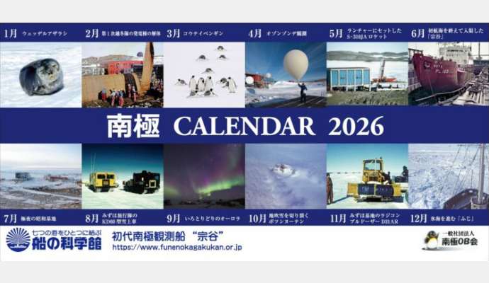 昨年に引き続き、今回もこちらのカレンダーに当館所蔵「初代南極観測船“宗谷”」の写真と「船の科学館」の名前が入ったオリジナルカレンダーを作成いただきました!