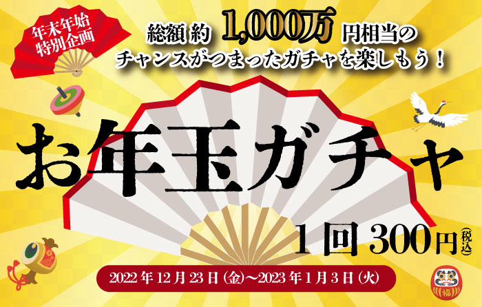総額約1,000万円相当のチャンスがつまった「お年玉ガチャ」が、ダイバーシティ東京 プラザ2F特設会場に期間限定で登場!