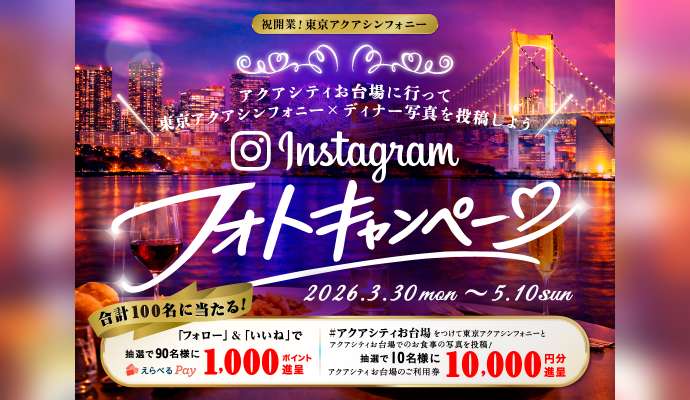 新たに誕生した「東京アクアシンフォニー」の開業を記念し、Instagramキャンペーンを開催します。