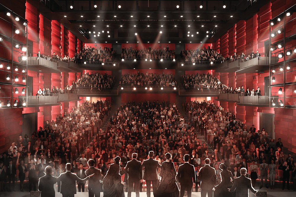 演劇、ミュージカルに最適な1,500席。さまざまな演出プランに対応できる自由度の高い舞台構造、セリフや歌詞が聞き取りやすい音響設計。