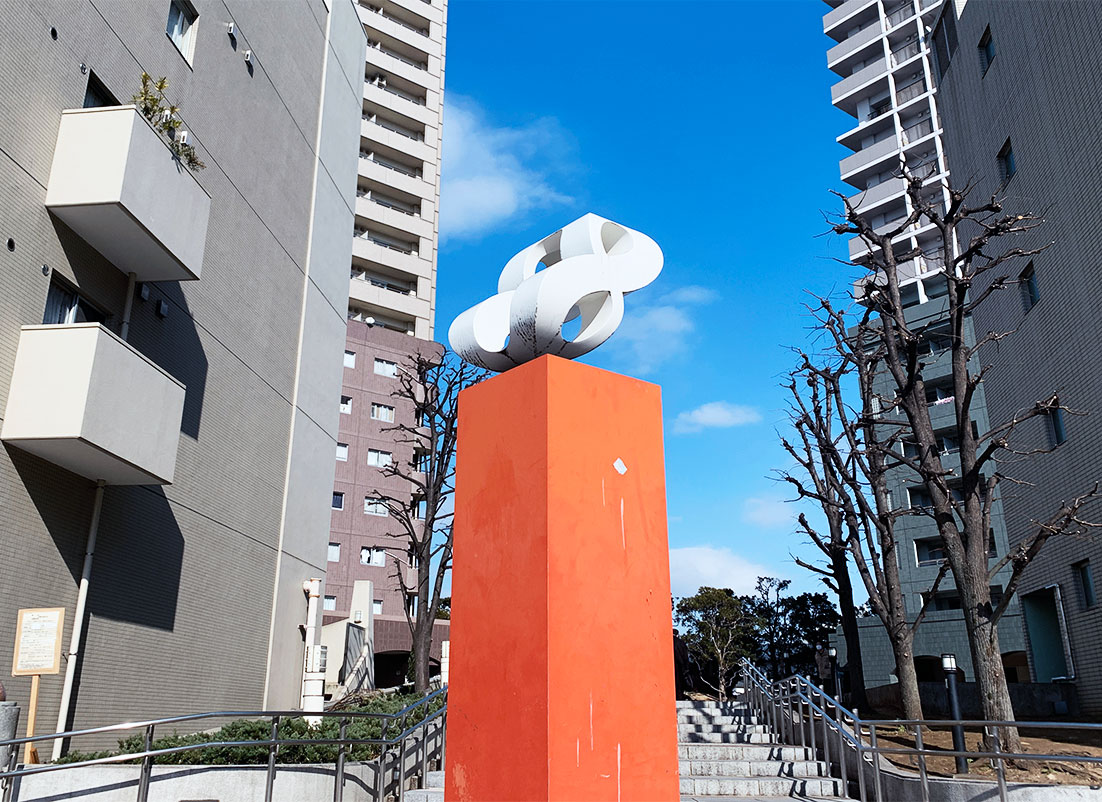 ウエストプロムナード公園内のテレコムセンター駅側に設置された野外彫刻。3本の円弧で構成され、それぞれを再構成すると1つの円になります。