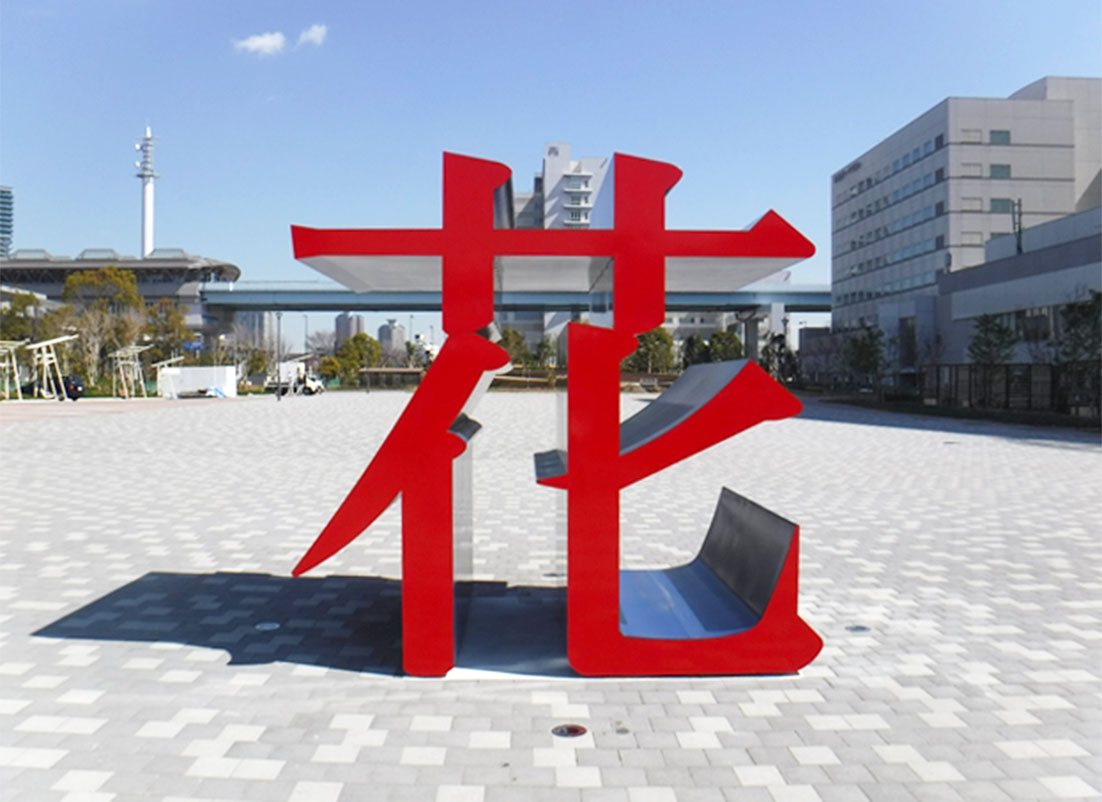 りんかい線の「国際展示場駅」から東京ビッグサイトに向かう途中の「花広場」に設置された、「花」の形をしたオブジェ。