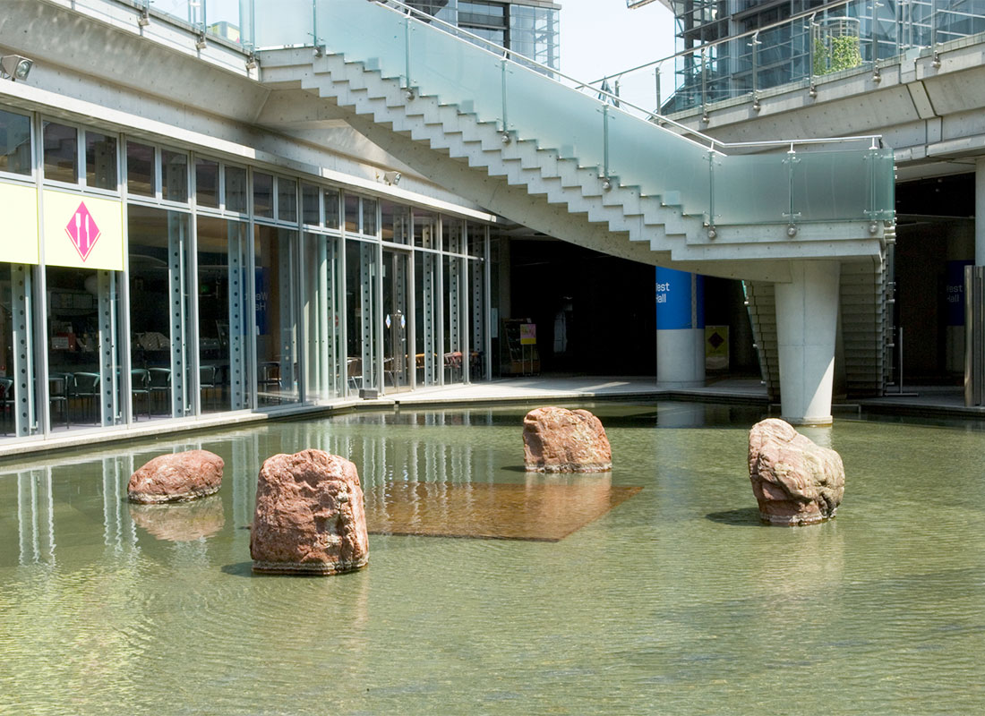 Lee Ufan氏作。西展示棟1Fアトリウム入口前にある石と鉄板と水と光のオブジェです。静かに揺れ動く水中に、広く厚い鉄板を置き、それを囲んで4個の大きな石を向き合わせ、まるで四方からテーブルを囲んで対話を交わしているような光景を表わしています。