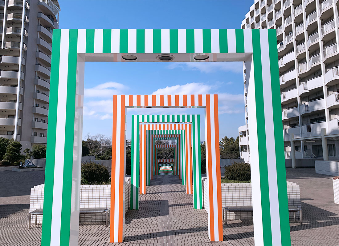 ダニエル・ビュレンス作「25のポルティコ - 色彩と反映」です。ポルティコ(portico)はイタリア語で柱の列のようなものを意味します。