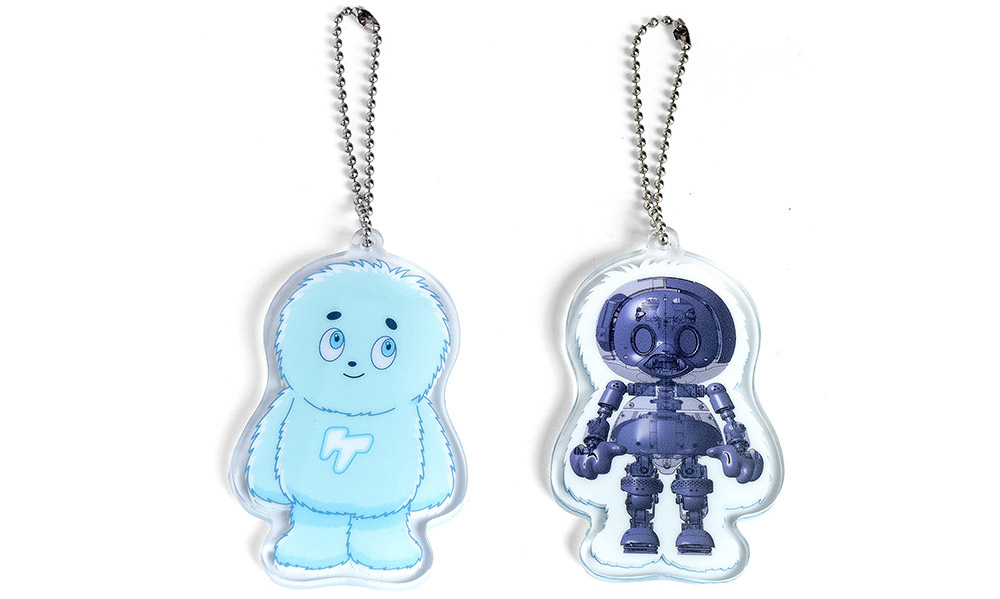 描き下ろしイラストを使用したアクリルキーホルダーは、表面にケパラン、裏面にロボットの内部構造図をあしらったこだわりのアイテムです。