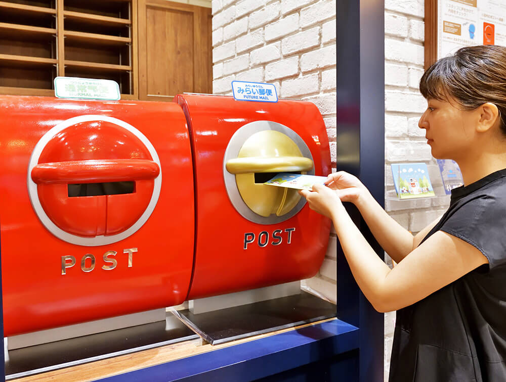 オリジナル切手やポストカードの販売、店内ポストからの投函も可能