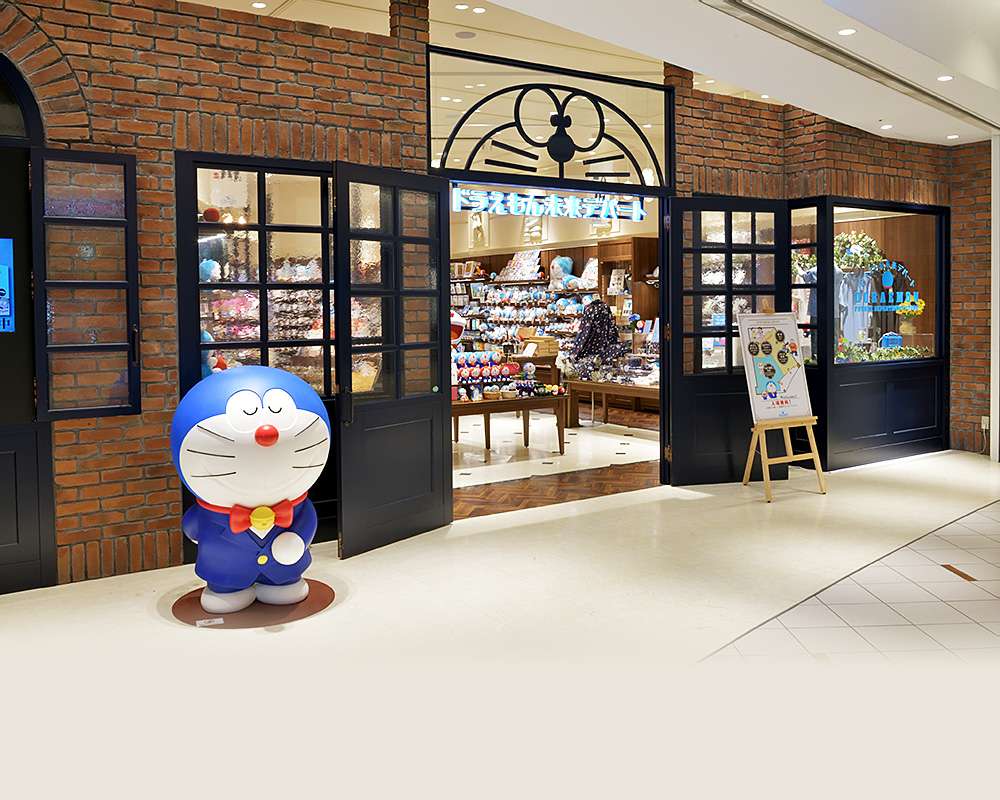 「きみの未来を、ちょっとよくするお手伝い」をショップコンセプトに、オリジナル商品をはじめとしたさまざまなドラえもんグッズが勢ぞろいしています。