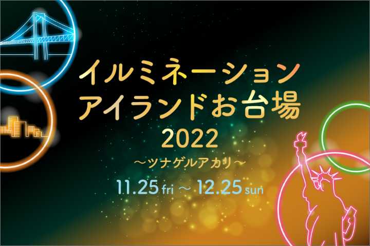 介紹東京臨海地區的燈飾點和“LIGHT WALK ODAIBA”。享受台場的 "ツナゲルアカリ"! 期間:2025年11月21日(星期五)〜 2025年12月25日(星期四)