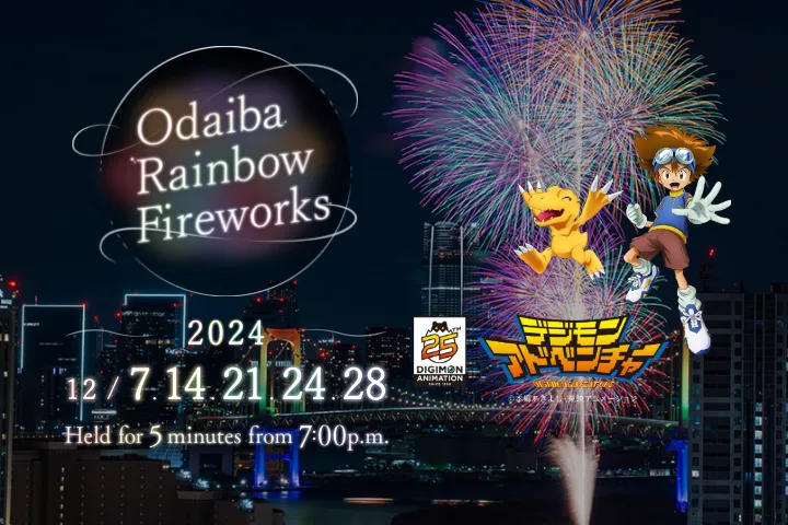 每年 12 月,台場海濱公園周圍都會舉辦煙花大會,在晴朗的冬季夜空中閃閃發光。可以欣賞彩虹橋等夜景,為聖誕節增添色彩。