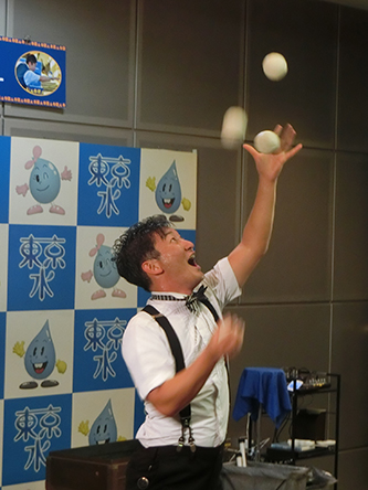 | 充分发挥了独特的表现力的杂耍、平衡艺术令人震撼! 其擅长的球技表演为世界级的技术。 |