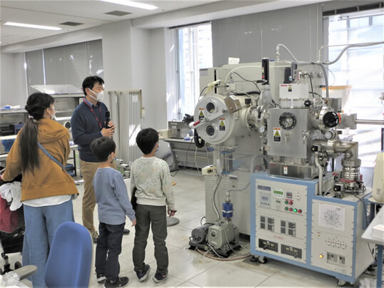 这是未来馆的附属“研究区域”。平时不会面向大众开放,这里每天都在进行最前端的研究。「来一探究竟吧! 研究室」将为大家介绍这样的研究现场,这是一个您可以感受到研究氛围的旅程。在本次访问的研究室,正在用化学的力量制造轻便可弯曲的太阳能电池。在大众平时无法进入的房间内,除了科学室也会有的烧杯和烧瓶之外,还有很多神秘的实验设备和化学品。不同于一般化学实验的印象。